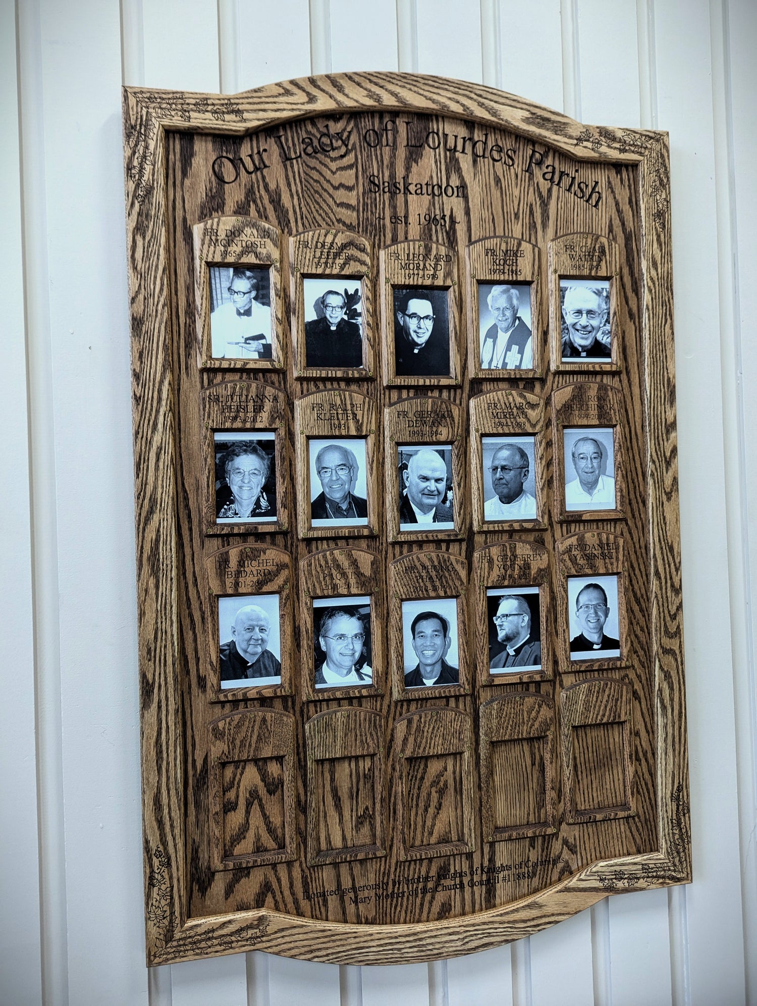 It was an honor to work with our client, Our Lady of Lourdes Catholic Church, to create a commemorative plaque to honor all the pastors since the founding of the parish in 1965.